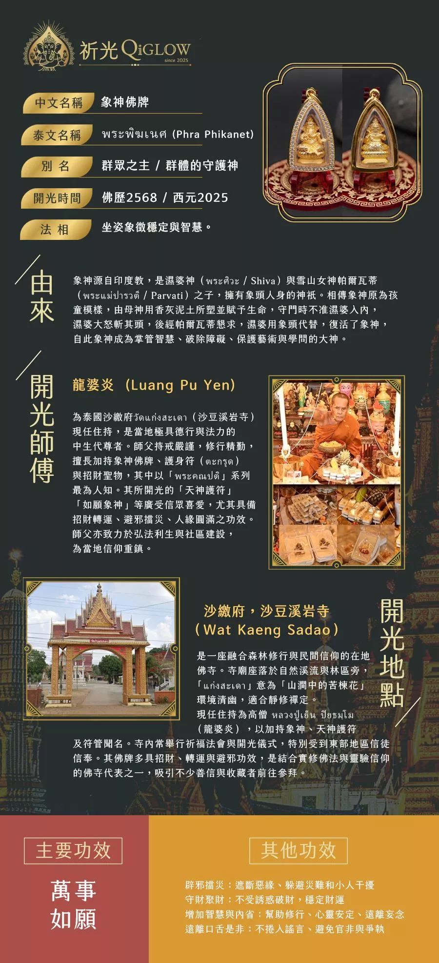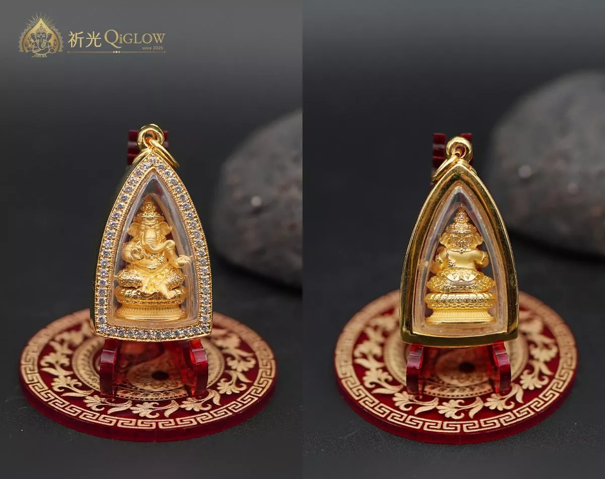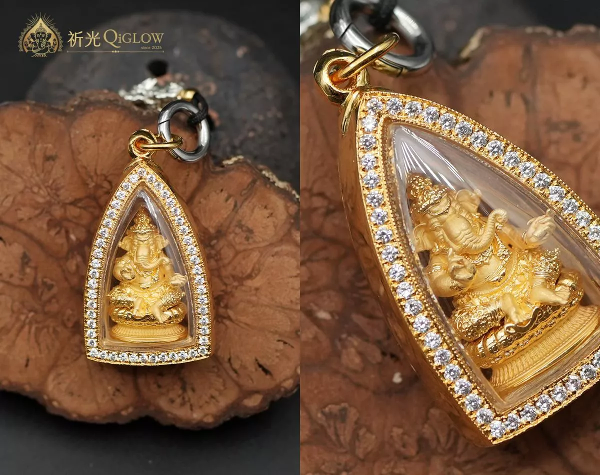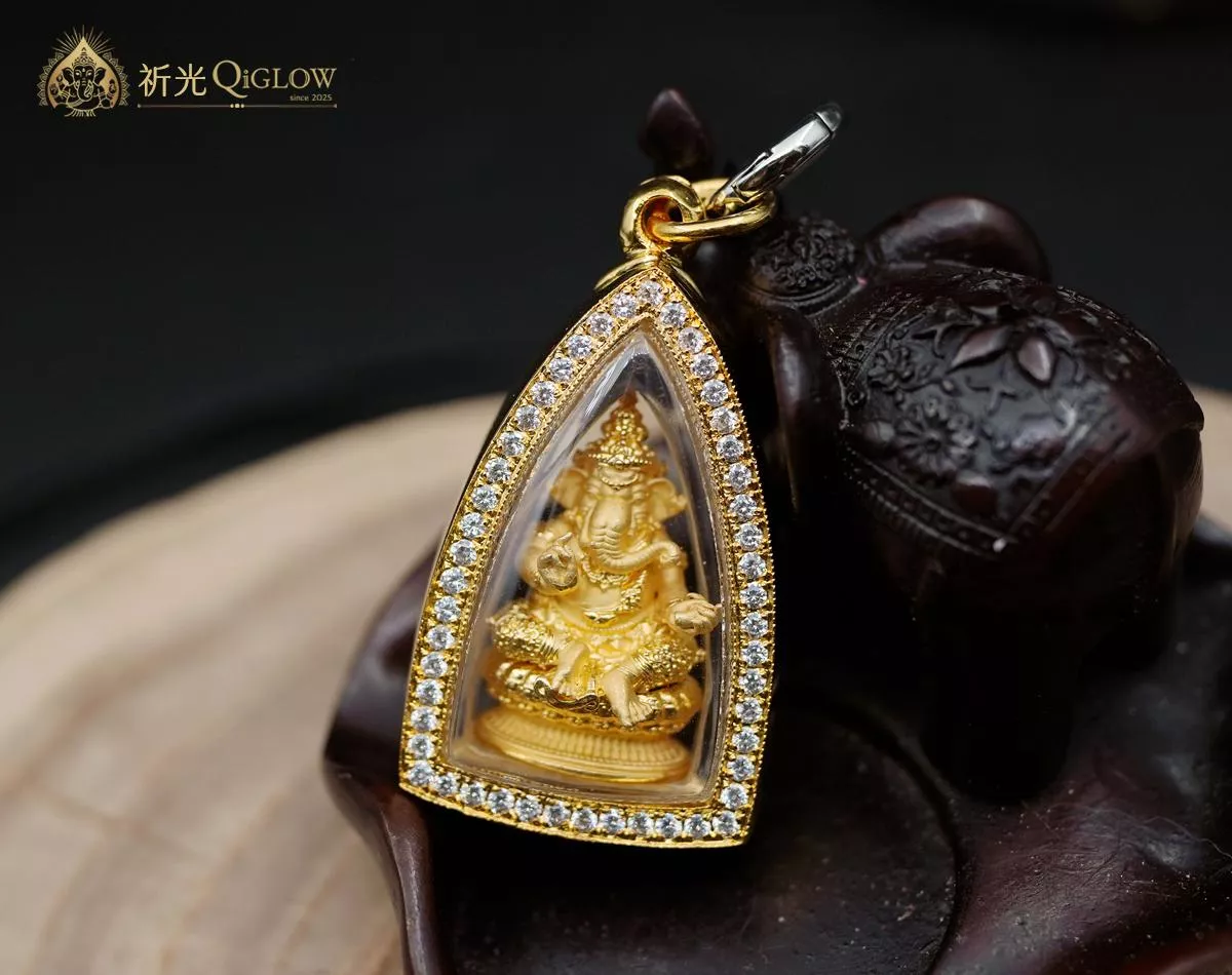 坐姿法相・安定智慧 (Stability & Wisdom): 象神是掌管智慧、破除障礙與藝術的神祇。此尊法相呈現「坐姿」,在泰國法脈中象徵著**「穩固的根基」與「冷靜的定力」**。它能幫助佩戴者在面對壓力時保持心靈安定,從內省中生出智慧,化解生活中看似無解的難題。