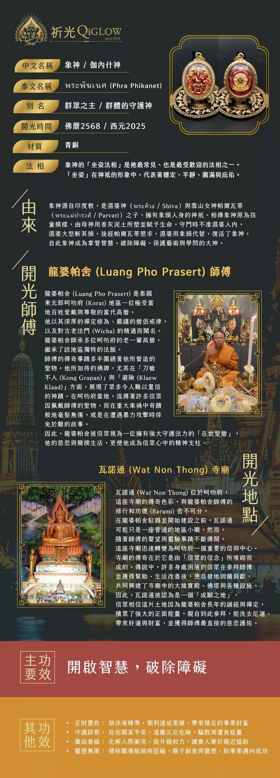 強力避險:師傅傳承自呵叻府老一輩高僧的「刀槍不入」與「避險」法門,為佩戴者建立強大的防護網,擋災避險,出入平安。