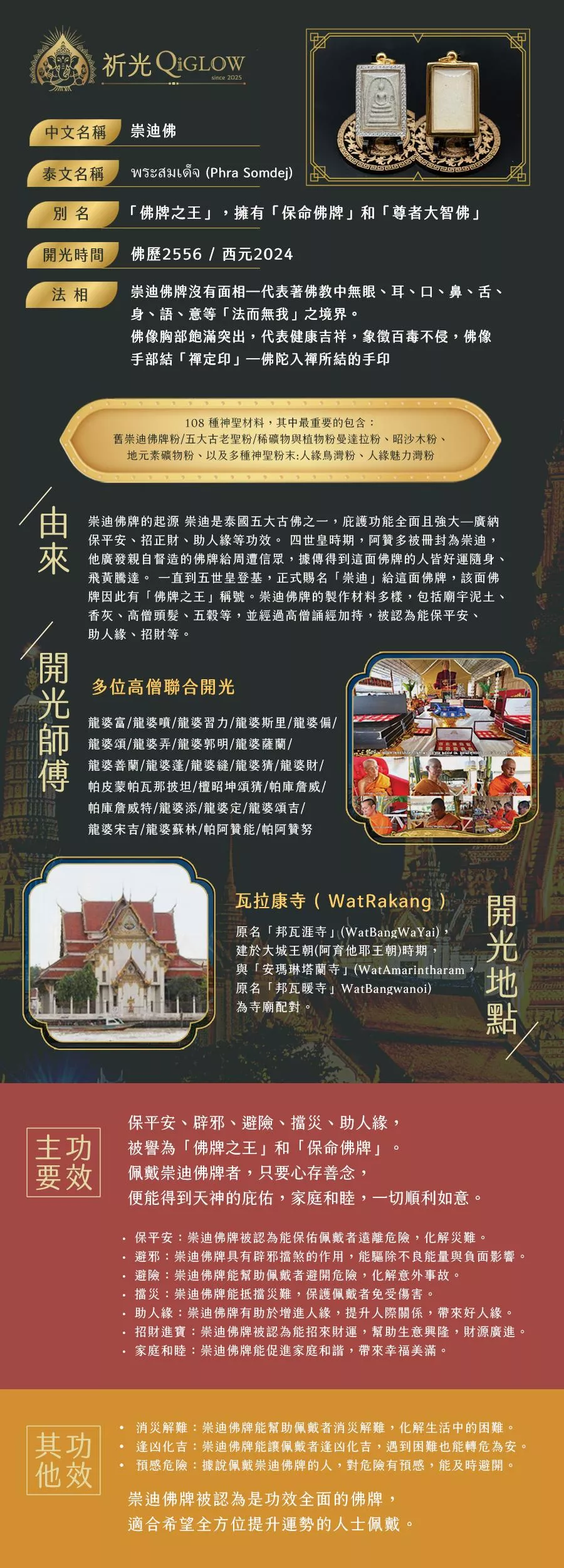 全能功效: 崇迪作為佛牌之王,護佑最為全面,無論是求職升遷、生意招財、出入平安皆有強大助力。