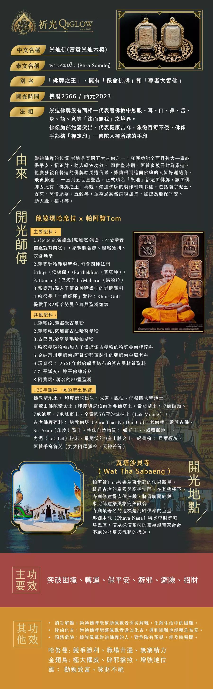 這款「富貴崇迪」是由泰國東北法術新星 帕阿贊Tom 邀請恩師 龍婆瑪哈西拉 共同加持的頂級聖物。它不只是一面佛牌,更是結合了權力與財富的強大護符:
