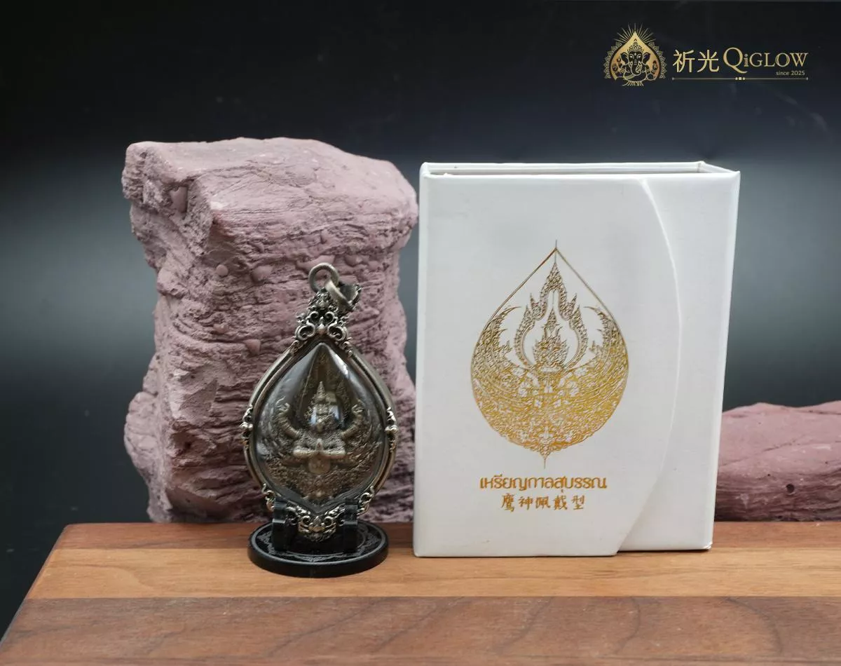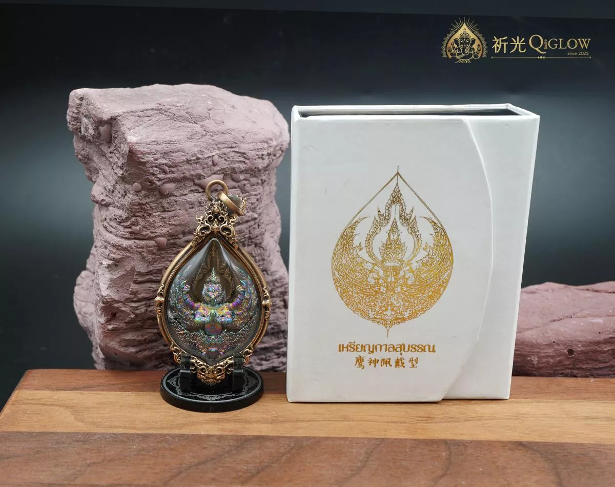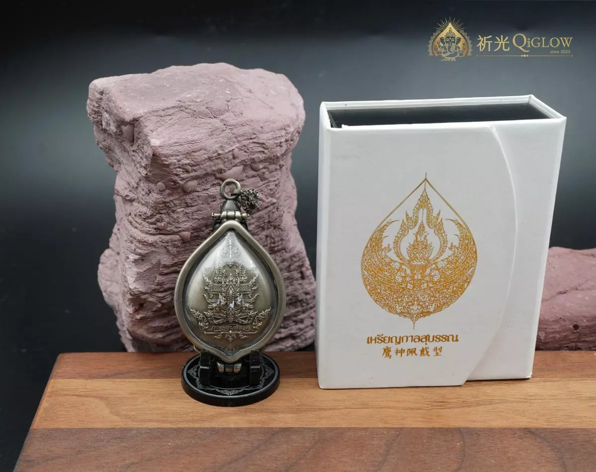 採用青銅材質製作,具備跨時代的古樸質感,展現不朽的精堅韌性。龍婆維吉師傅承襲了多位古代高僧的祕傳咒語,擅長將「權威」與「守護」的力量注入金屬聖物中,使這款 2567 年督造的神鷹具備極高的靈氣。